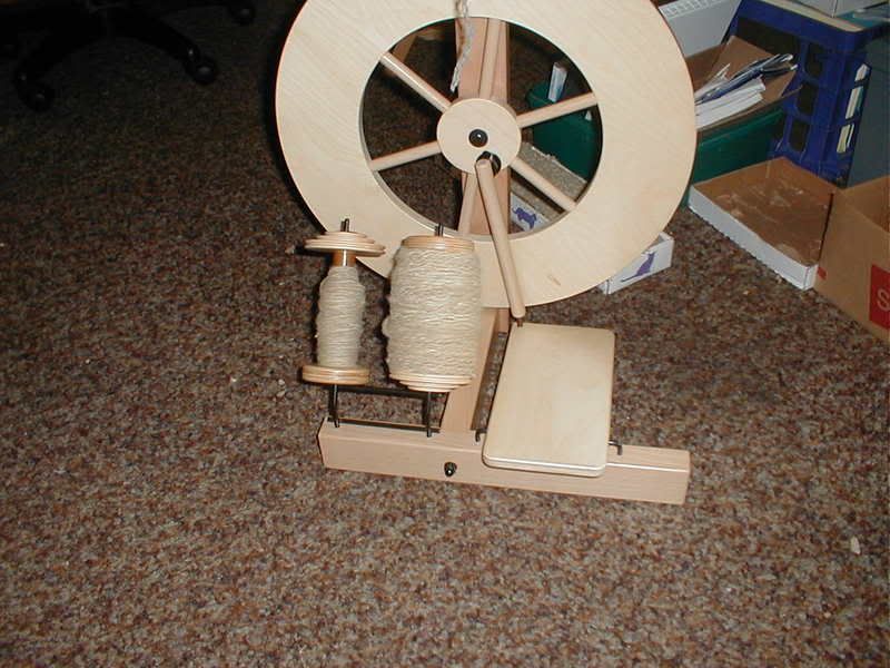 That's a Louet S51, Single treadle wheel you're looking at. Oh, so nice! The same weekend I picked this up, a friend of mine had managed to snag two very large trash bags full of nice Montedale ram & lamb fleece! The owner usually justs tosses all of it on the compost pile in the spring, since most of her flock generates course wool, best used for carpets, but she had two Montedales in her flock and that's good spinning. Though nothing like Corrieadale or Rambouillet, or Merino, but when it's FREE, it's good spinning (at least to practice on!)